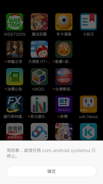 但是一拉通知欄後畫面就開始閃,然後錯誤一直跳就像下面這張了。