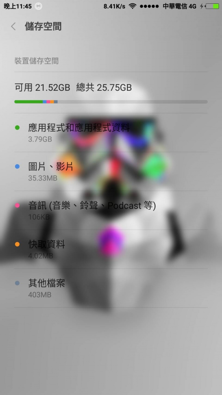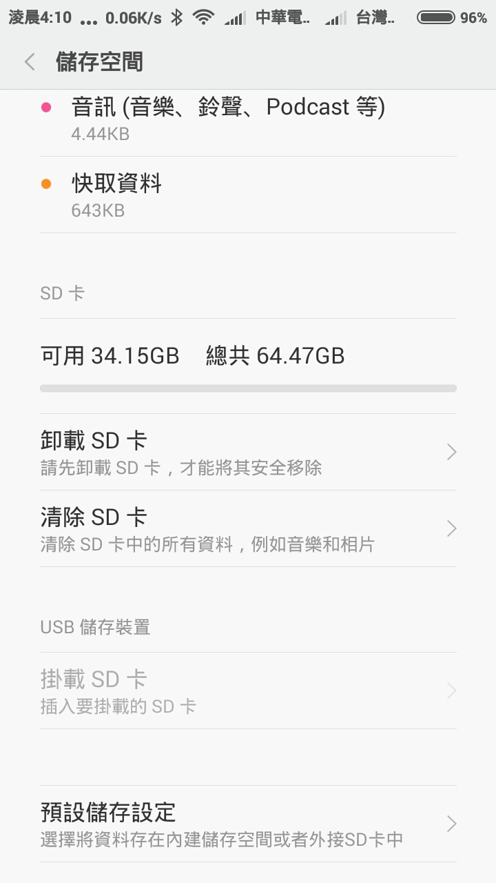 開機時我選擇整合再一起, 結果在"關於手機"只出現一個內部儲存64G, 但是在儲存空間顯示總共25.75G.