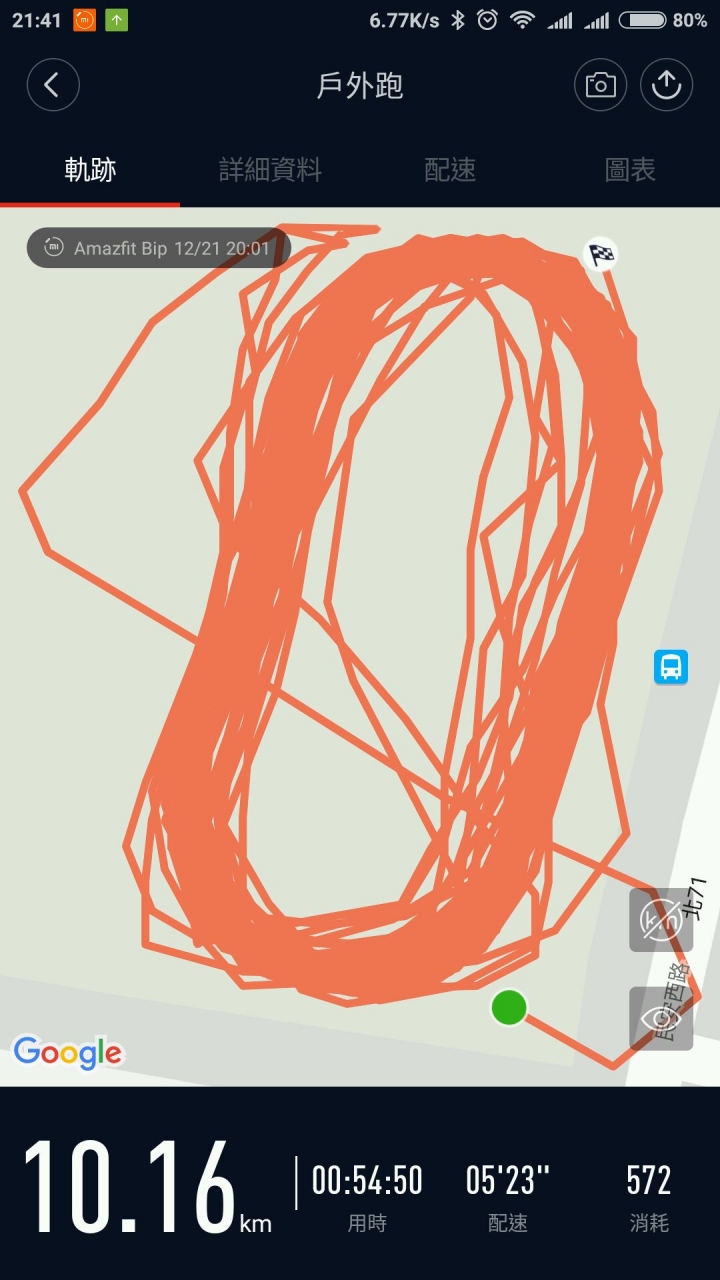 趁這次活動也入手了一個玩玩,可惜功能真的不多,重要的GPS連線似乎比紅米N4x手機還不好,有些軌跡還是會亂飄甚至大切西瓜,運動一開始GPS定位很久,就算在空曠地也要一分鐘以上!如果可行,更希望在手錶端增加藍芽連線的設定開關,讓使用者能在不使用同步時自行暫時關閉。當然可以選擇在手機端關閉,但手機端往往會連接其他裝置(像是小米的藍芽音源輸出)等,所以如果手機關閉藍芽,所有的裝置皆無法使用,因此如果手錶端的藍芽可以選擇關閉,使用上會比較方便。手錶紀錄結果手機紀錄結果
