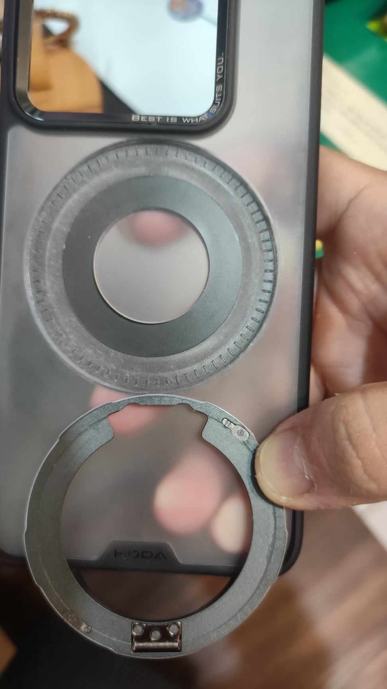 Noctis Lucis 技巧拆XD 就利用不是鏡頭區比較多背版可以凹折的地方彎一下,讓那個環形的卡扣彈出來,依樣畫葫蘆把四個卡扣都脫離就下來了
