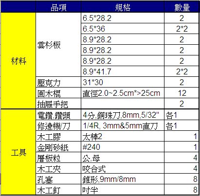用到的材料工具列如下: