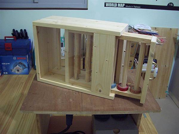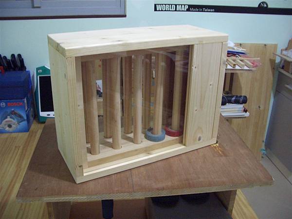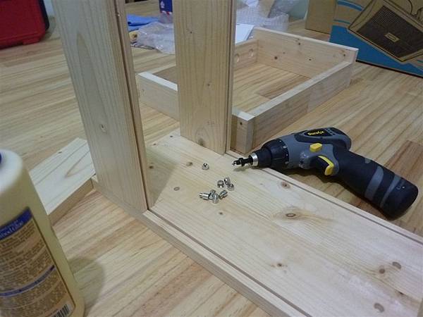 抽屜寬度較外盒來的苗條些,所以在內裡打了銅珠,抽屜下方用修邊機修了軌道出來...