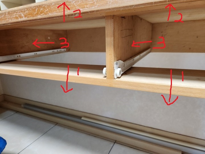 看起來是空壓機打ST釘固定磨切機切不太斷,也沒那麼長的刀頭請準備"肉滷阿" 可能要大隻+小隻的加一隻有點分量的鐵鎚 (太輕的鐵鎚敲不動且反而大聲)腳路可以就用小隻的一支一支釘拔 (很慢 但很小聲)不行就用大隻的整片一起橇了 (這就會粗魯一點了)因為肉滷阿要敲進去咬住釘子頭,才有施力點去橇要敲就不會太小聲..照順序敲下來有可能掀起來2的時候,3就一起掀起來,不過不重要,重要的是1、2、3都拿走才有空間去橇後面固定在牆壁那塊木板另外橇完要面對坑坑洞洞的牆壁因為ST釘拔出來會順便帶整塊水泥下來
