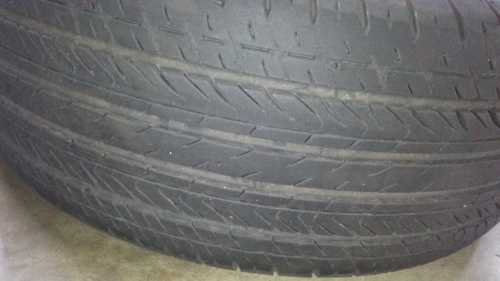 這小弟之前的輪胎(六歲,已換掉)可以看到龜裂的地方都在外側,因為裡面曬不到太陽我是停正東西向的,所以太陽在正午時差不多只能曬到有裂的地方再往內就會被輪拱擋住(四輪都一樣的情況,因為有時正停有時反停)所以外側上蠟反而是會讓內外老化比較平均...我是用3M的輪胎蠟不過照片中裂的地方不能噴,也沒噴過但是現在考慮會偷噴一下(不能整個胎面都噴啊~ 這我知道)因為我開車超慢的....喜歡開快車的不要學
