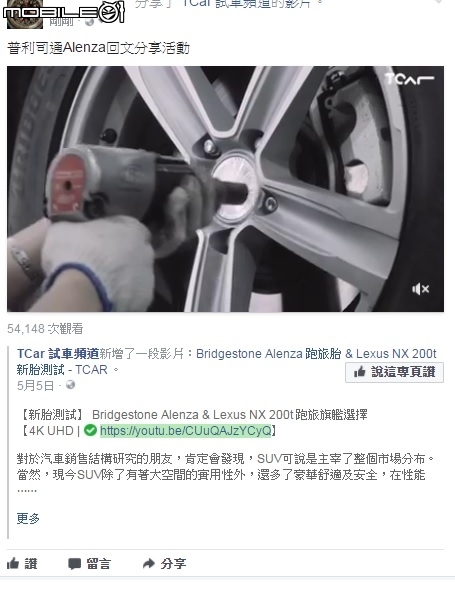頂級車就是要配頂級胎!我最期待濕地操控性UP的《普利司通Alenza 頂級SUV專用旗艦胎》給我頂級的駕駛感受。