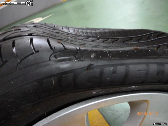 高速公路撞到大坑洞,跑了約10公里後沒氣了...因雨勢很大,視線不良,不敢停路肩,只好閃警示燈+後霧燈龜速走路肩,開到服務區換備胎...胎沒救(不是破胎壁也無解,失壓續跑,內緣都"呼企啊"),圈安好...