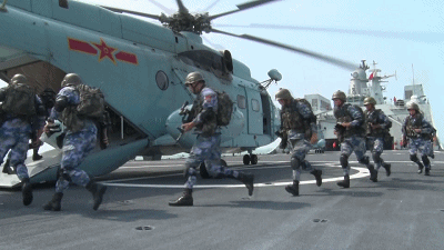 六艘071登陸艦一波次可以放90輛,其他支援的步兵則搭直昇機上岸會合。