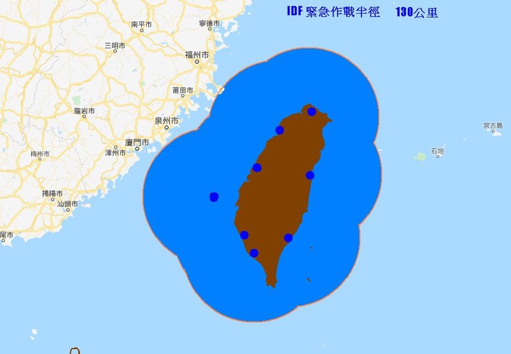 stever2018 wrote:新的天劍2射的更遠,重量更輕,才能掛4枚+2枚劍1,現在沒看到很正常,當然我有注意到上面Idf 的野獸模式,但以idf 的推力肯定是超負荷,非常態 IDF 最大外載為 8000磅.空對空模式 :以前一些狀況看到 兩具275油箱 + 2中 + 4短 的外掛. 這種外掛重量大約 6700磅.提昇後兩具275油箱 + 4中 + 2短 的外掛. 外掛重量大約 7200磅.......-----如果, 搞個 三聯發射架 掛在機翼內派龍上 ( 還在內派龍負荷限制內 )則為 :中線 一具275油箱 + 8中 + 2短, 外掛重量大約 6700磅. 少了一具275油箱, 作戰半徑略短些, 但做為台灣本島防衛性質, 夠用了.下圖參考 : F-16的三聯發射架IDF 緊急攔截作戰半徑 ( 無外掛油箱 ) 僅 130公里.看下圖, 可見美方當初精算過後的限制.剛好摸到大陸陸地邊緣, 剛好摸到日本與那國島邊緣.................