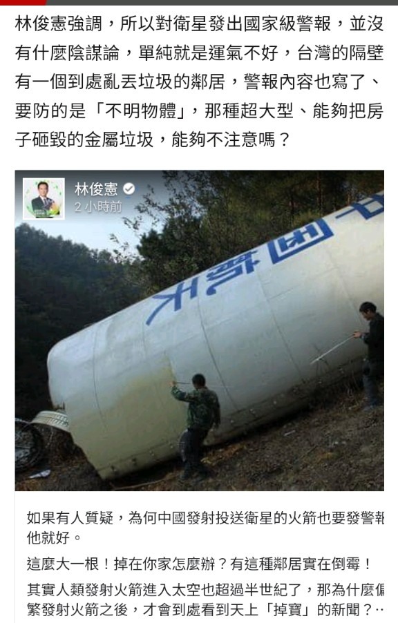 純陽掌 wrote:中短程的東風和長征火箭是二個完全不一樣的東西固體燃料的東風飛彈,火箭燃燒完不會有掉到台灣的疑慮,液體火箭的長征系列就難說了 一個在軍版發言所需要瞭解的小常識:中程的東風21和東風26系列都是雙級。你猜他們有沒有往東打過?