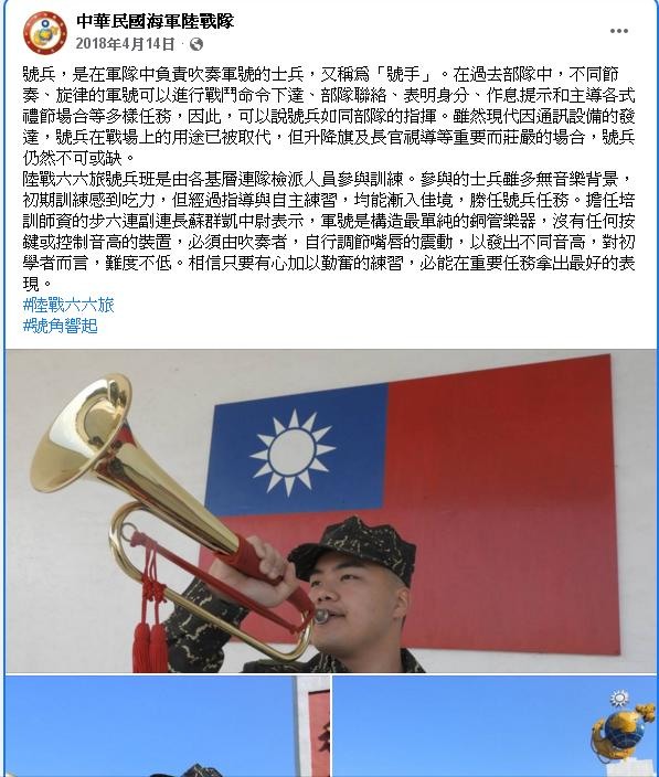 henry999 wrote:現在號兵只剩升降旗的作用,,一個旅僅1班號兵,所以一般連隊不會有這物,也不會各連都有 號兵 , 作戰 ( 演習) 時有沒有在使用 ?! 如果沒有, 那就像上面 美軍空騎第一師的排級馬隊, 或 海軍的帆船 ..... 保留傳統的儀式作用.