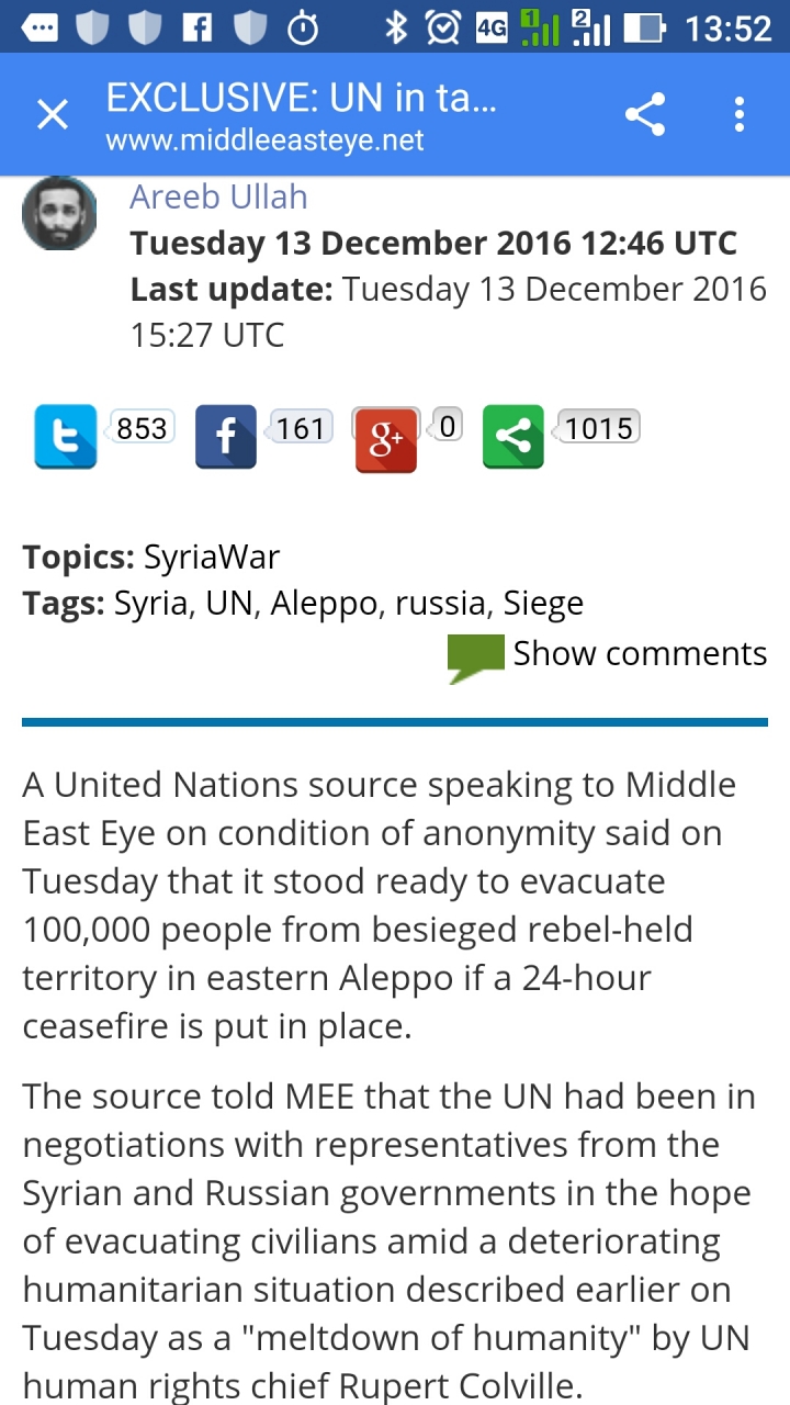 看BBC好像阿勒坡撤退已經延遲了,因為阿塞德政府要求:在同時,也要撤出在伊德利卜省被包圍多年的政府軍民,和受傷人員。