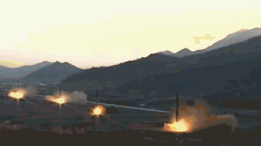 朝鲜在发展火星系列的中程弹道导弹的时候,已经开始有了成体系的航天工业。因此,各种硬件条件相对来说还是比较齐备的。上图为导弹发动机正在液体火箭发动机试车台上进行热试车。可以较为清晰地看到发动机正常工作时产生的马赫环。注意常温液体燃料组合燃烧起来后的独特颜色。