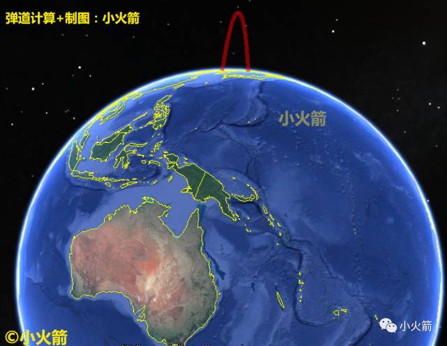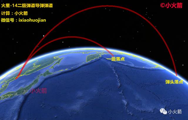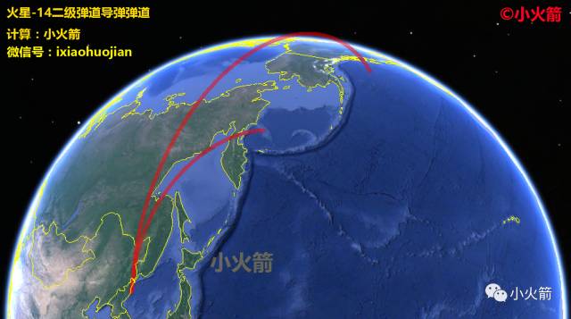 小火箭计算了4条火星-14弹道导弹的弹道,以便展示该款导弹的覆盖范围。