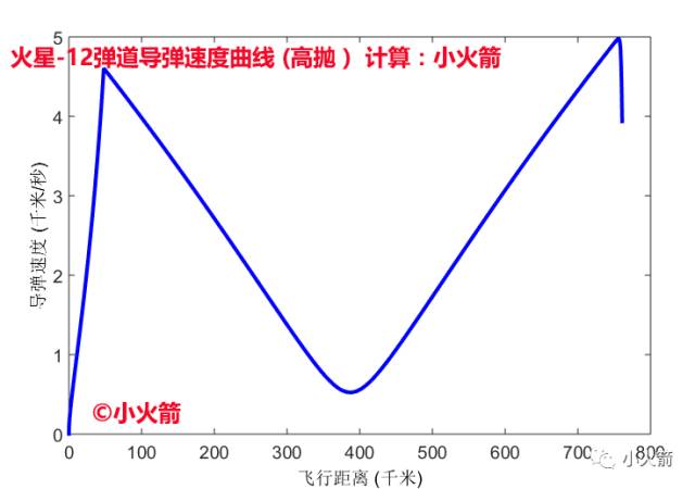 这是小火箭计算的火星-12弹道导弹打高抛弹道的速度曲线。