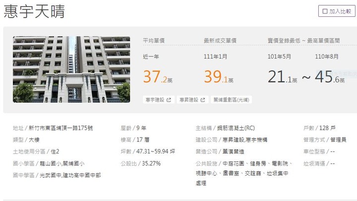 只是個過程 wrote,kevin721202 wrote:房市傻多炒了好幾年, 連竹市東區蛋黃中的蛋黃地段, 惠宇和富宇一坪才30多萬, 遠輸大竹北偏僻西區 都知道儍炒了好幾年(其實就這兩年亂漲),還在惠宇一坪才30幾?惠宇的二手屋很少出的(預售就賣得好(有人愛),但因比行情貴,所以很少投資客碰),我找個富宇的圴價和目前行情(比較多交易,看均價才準)。增長一下房市的知識吧!