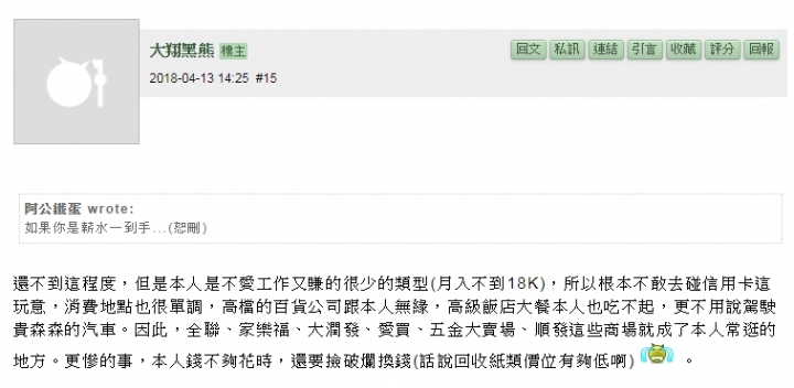 moschen wrote:整棟樓看下來,就是樓主超廢的概念,刻意扭曲軍公教退休俸,還扯什麼勞工?勞工退休金改革,還沒做咧!我斷言蔡英文不敢做,如果她用和砍軍公教退休俸相同標準,勞工們、廢樓主,準備起來革命吧!但是,我還是認為她沒種(拍謝,她沒有球,我錯了),不敢處理就是不敢處理。軍公教退休人員們,會永遠記得這一筆賬,算在蔡的頭上。 對一個認拿18%罵18%為主子的人,就是這樣水準!只有他們行,其他人都不行!