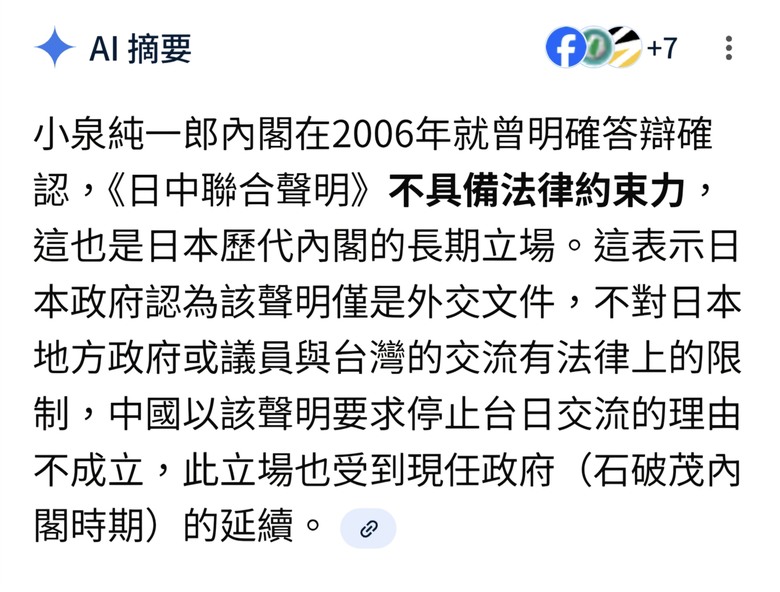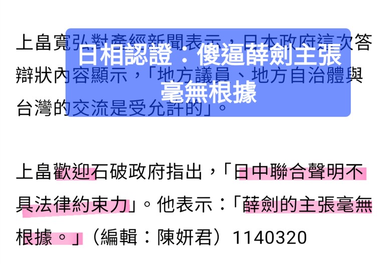 1972年日中聯合聲明「台灣是中國領土不可分割的一部分」 高市:沒有改變