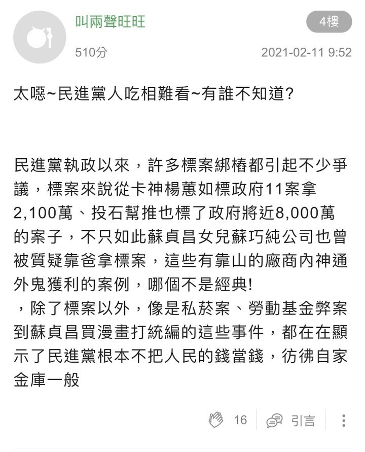 讚讚讚讚 wrote:旺旺你都沒有出來回覆(恕刪) 這是1450還有羞恥心的意思嗎?但我覺得不可能會去當1450基本上就是沒良心的都沒良心了怎還會有羞恥心?應該是共用這帳號的STAFF還在開會研究怎麼凹