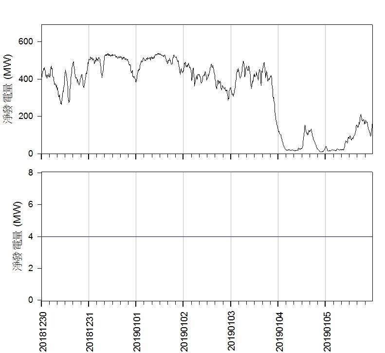20181230 ~ 20190105海洋竹南風電總發電量(上)與海洋竹南(下)的比較[data] 20181230 20181231 20190101 20190102 20190103 20190104 20190105注:海洋竹南的數據顯然是錯的,已經持續超過一個星期。