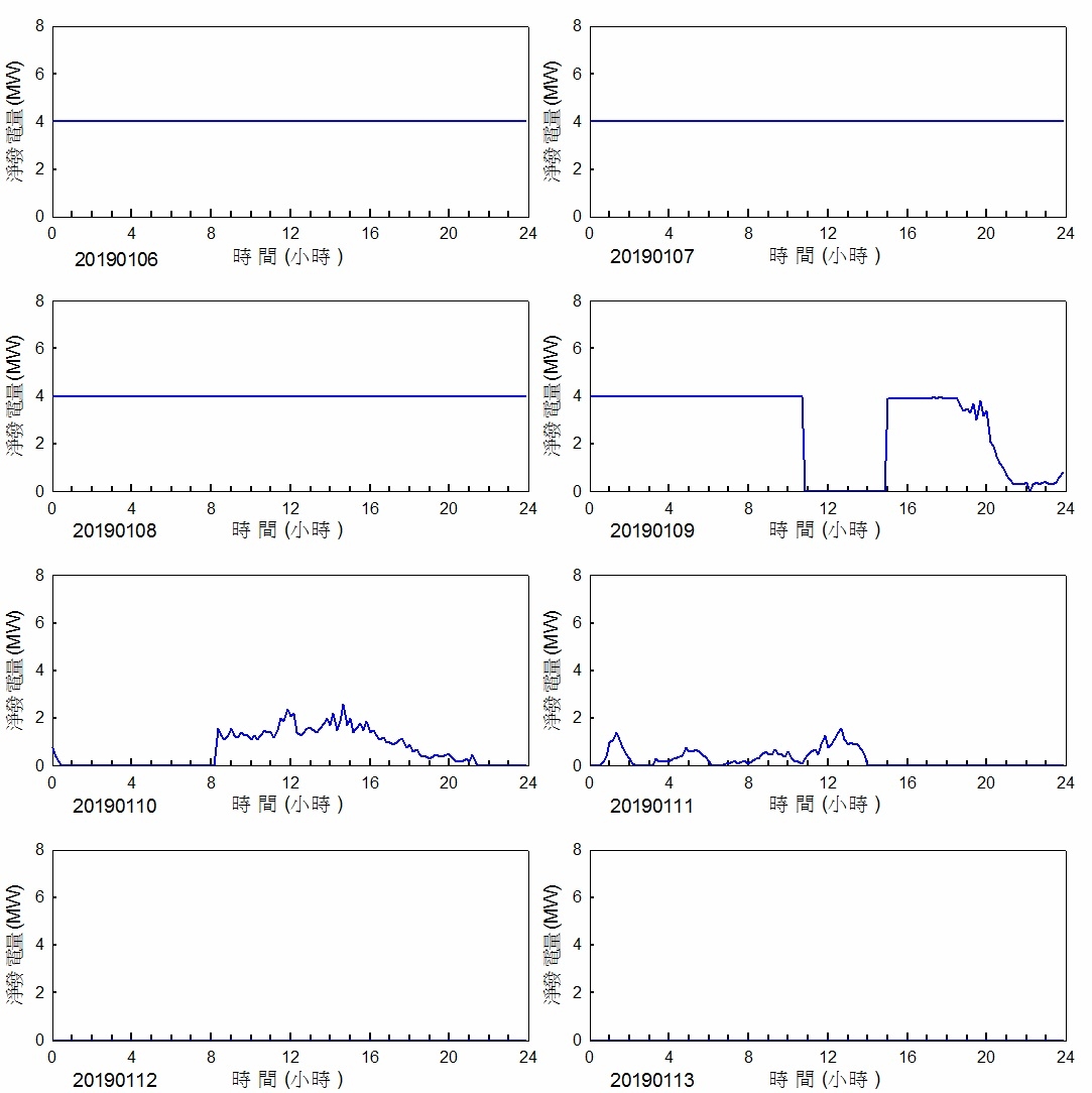 20190106 ~ 20190112海洋竹南風電總發電量(上)與海洋竹南(下)的比較[data] 20190106 20190107 20190108 20190109 20190110 20190111 20190112