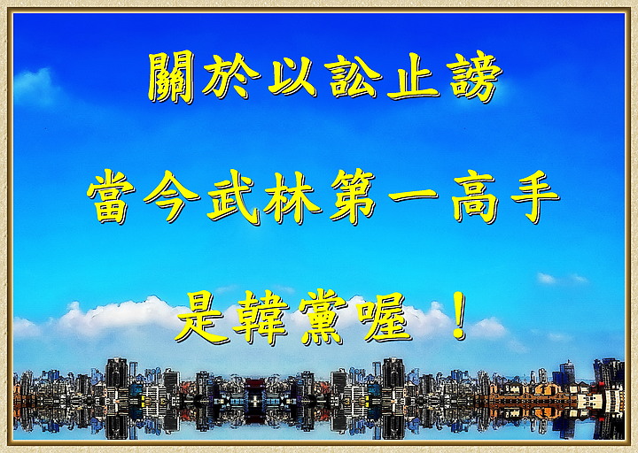 kay1972 wrote:對抹黑謠言本來就要提告,一個都別放過。難道別人在網路造你的謠,你隨便人家造謠嗎?今天楊蕙如跟民進黨的關係,是否拿錢養網軍,牽涉到選舉結果與納稅人的錢,不就是可受公評的事?連討論都不能討論?現在是威權要復辟了嗎? 那為甚麼韓黨要告黃光芹、張雅琴、鄭佩芬、安幼琪等等媒體人呢?媒體為民喉舌,幫選民檢視總統候選人,韓黨卻恐嚇提告,算甚麼?韓說名嘴都收黑錢,韓敢指名道姓嗎?韓說九成媒體被民進黨控制,顯示韓的程度很差,要不就是心地很壞。難道挺韓的中天集團與TVBS及聯合報系、部分東森節目,才占一成?韓說民調都是假的,日本媒體與路透社,十分搖頭!