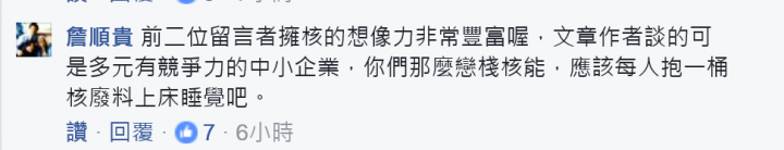 但是他既無法阻擋大潭電廠過關,又不掛官求去以明其志,反而是在臉書上跟擁核民眾對嗆: