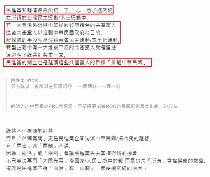 而且你又說(綠共、紅共本一家),那你投賴清德就好啦,選什麼(紅共的一國兩制) ! ?
