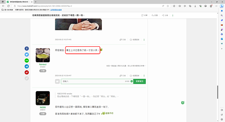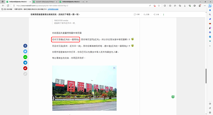 但你又想選(紅共的一國兩制),那你等於認同(紅共),所以你也想消滅中華民國啊 ! ?