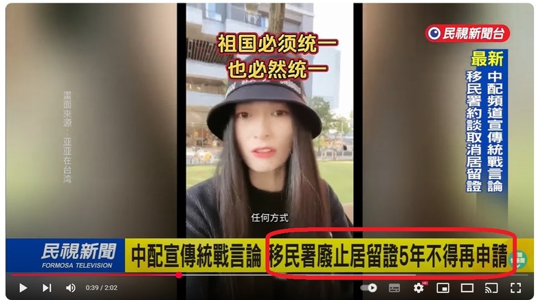 lkk77 wrote:陸配網紅「亞亞在台灣」涉武統言論 移民署廢止在台居留許可2025/3/11 19:32(3/11 19:45 更新)(中央社記者黃麗芸台北11日電)陸配網紅「亞亞在台灣」自拍網路影片發表武統言論,日前遭舉報被移民署約談。移民署今晚表示,經依法調查並會商相關機關後,將依法廢止其在台依親居留許可,擇期安排出境 噗疵這陸配網紅真傻了怎麼會質疑民進黨抗中保台的決心