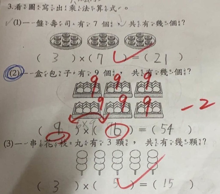 並且即便是這種硬去符合病句的奇怪條件,那包子這題跟上一題壽司題也前後矛盾,壽司題的算式是盤數X個數是可以的,包子題盒數X個數就不行???