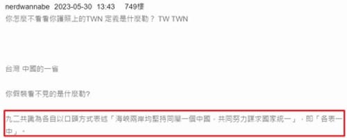 支持一中的你,紅框就是你自己打的文字。 所以你自己是搞分裂、搞台獨?