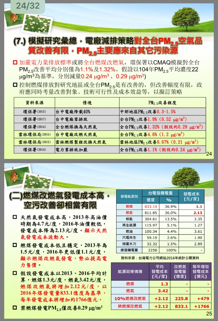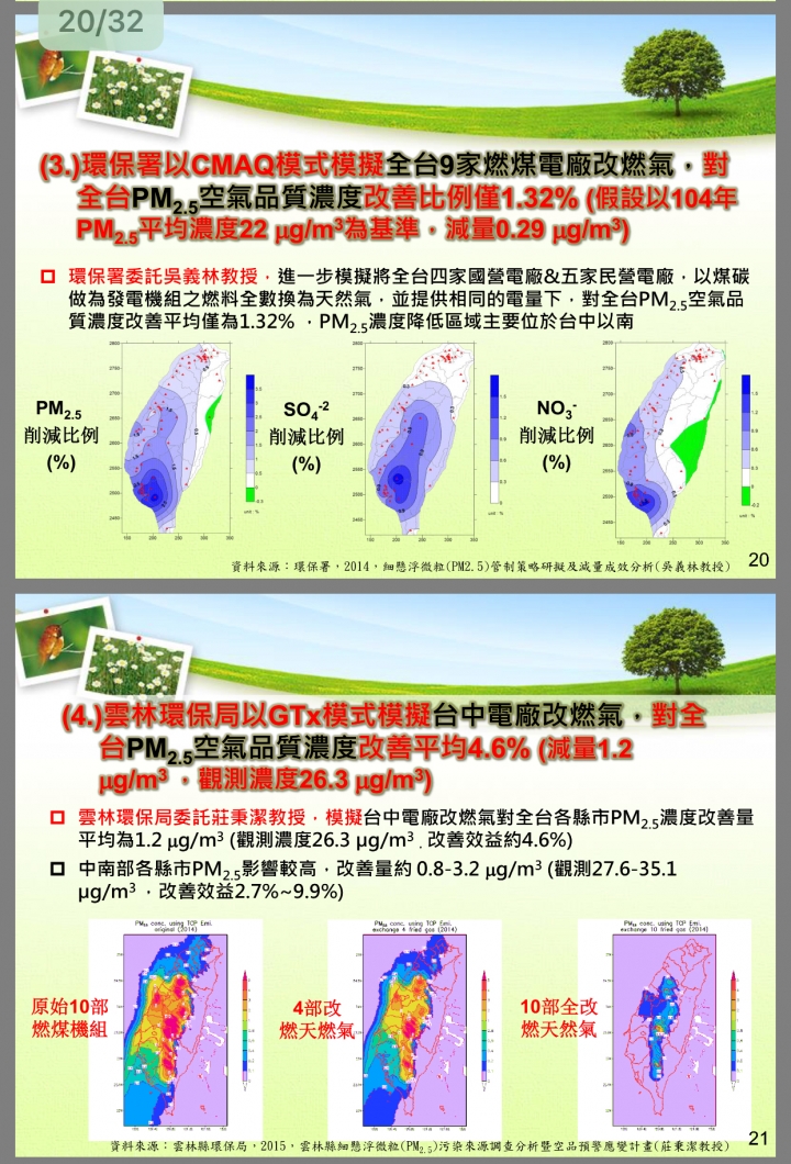 你信這種鬼話哪很好啊...那請切記,中火從96年開始共十個燃煤機組併聯發電,104年才開始配合空品降載(當年全台燃煤使用量為自96年起歷史最低),興達從105年開始配合空品降載(當年全台燃煤使用量為自96年起歷史次低),全台104~106年平均年生煤使用量比96~103年之間的年均量還要低,想必您對這幾年的空品改善一定很有感