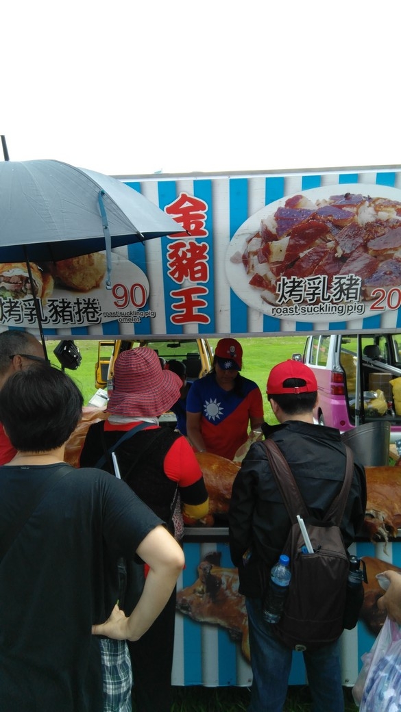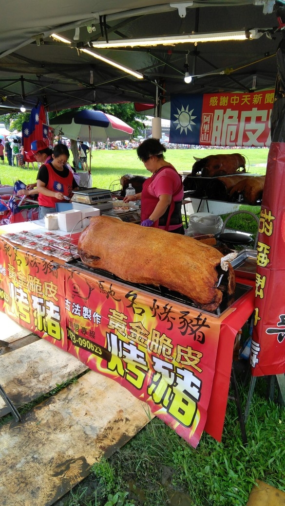 有沒有用不知道,其實問現場攤販最清楚早上10:20-11:10趁人少時去晃了一下單價就是觀光區的等級,100元起跳民主香腸是只有一攤最便宜30,其他均一價35元烤全豬果然壯觀,大概有10攤在賣.全省小吃匯集,111攤好像有點少,希望下回能擺200攤起跳警察開單不手軟照杏仁哥指數-警察開單越多,代表攤販賺得更多幫核四公投打一下廣告攤位上的旗子很好辨認不須證件但你填寫的住址必須是和戶籍謄本上的地址一模一樣