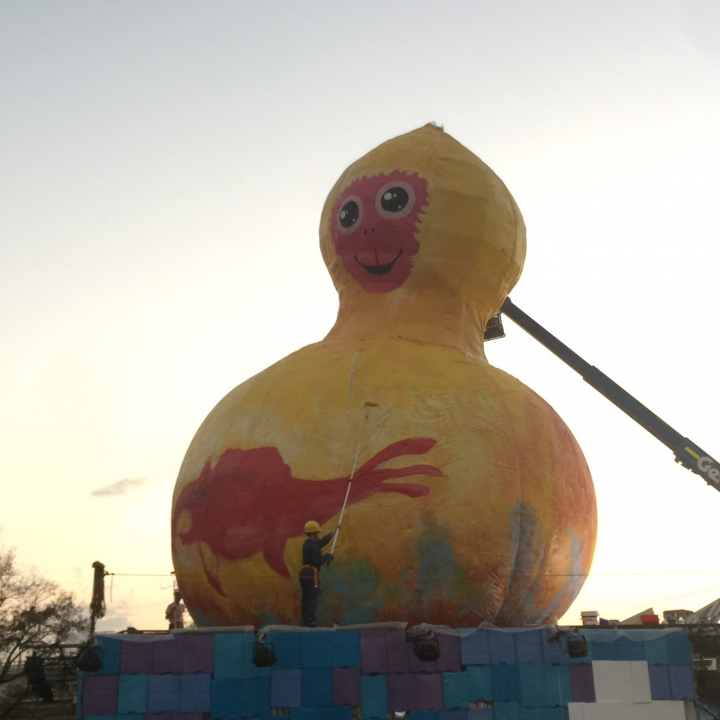 根據《蘋果日報》報導,主燈設計師林書民今天表示,團隊有為福祿猴塗上乳膠,由於前幾天下雨,導致乳膠有點掉色,但只有部份,不是整隻猴子都掉色。他指出乳膠大約半天到一天就會乾,等乾了就會防水,今天下午團隊會再去補色,20日能夠準時開幕登場。
