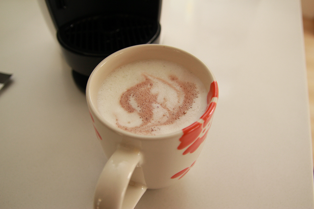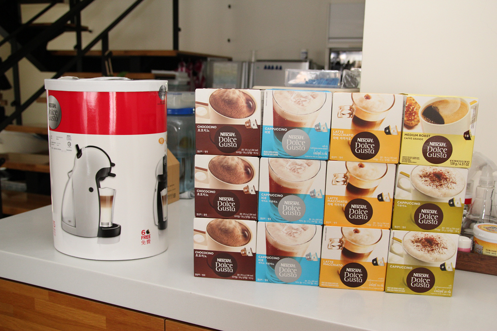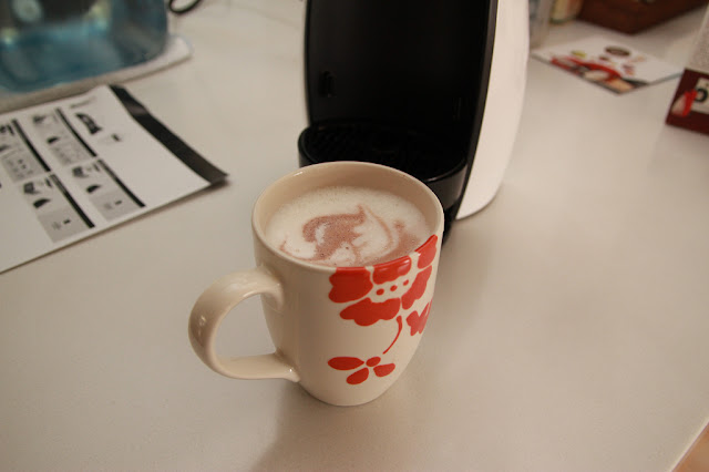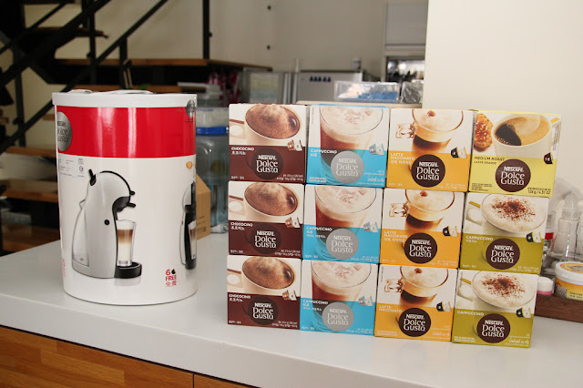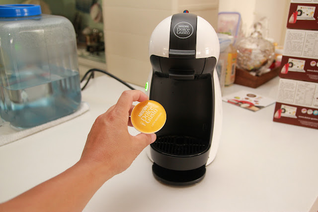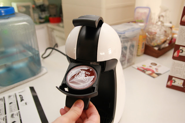 膠囊來了 , 第一泡就先拿來泡卡布奇諾的膠囊 !