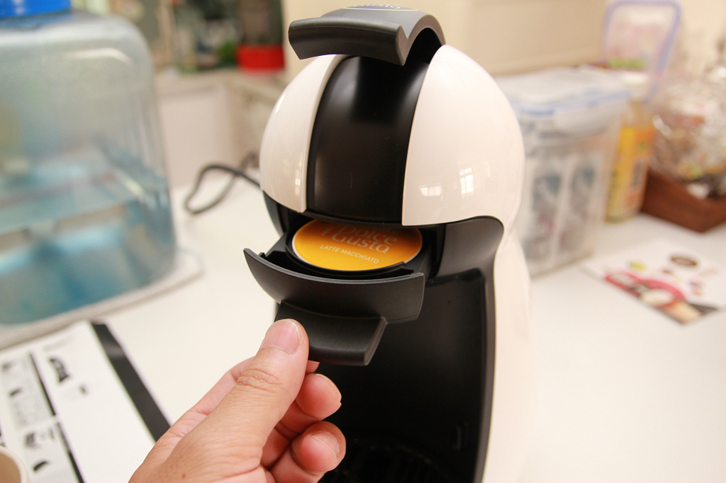 聽到喀的一聲 ! 上面的蓋子蓋下 , 會有個東西把膠囊戳一個洞 !