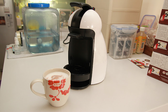 最重要的出現了 ! 原來是個長得很像企鵝的咖啡機 , 沒有這台咖啡機 , 弄起來好像挺麻煩的 !