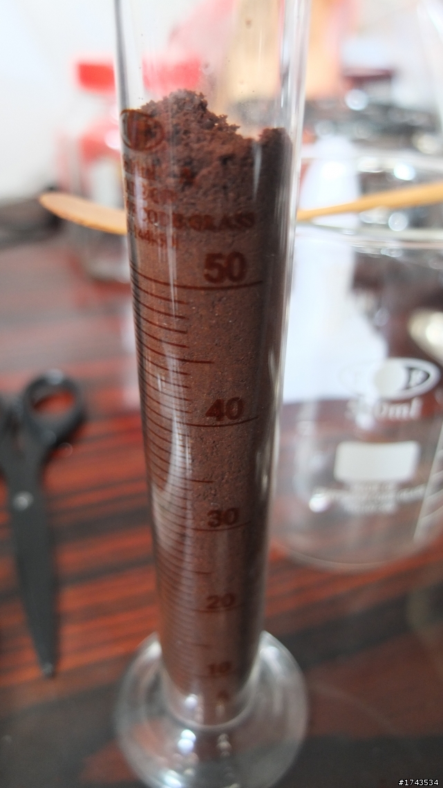 抱歉,之前口誤,這次重新測量,30ml(壓緊的狀態)約11~12g,密度比值跟我網路上查到的咖啡粉差不多,皆為0.38。