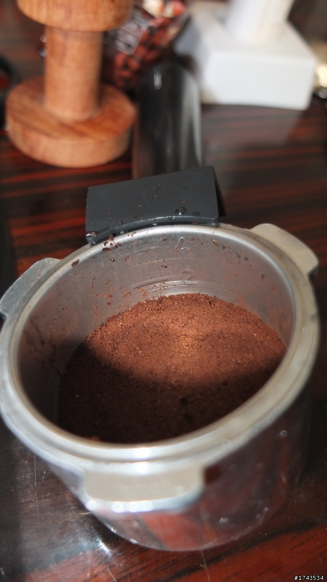 粉太少~上義式機~不可能會有creama+咖啡餅(粉杯裡因該是水水糊糊了)