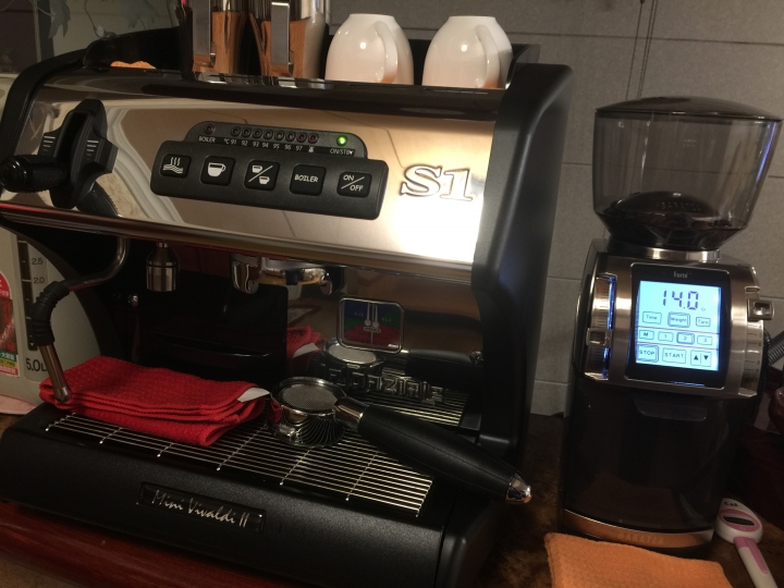雖然煮了1、2個月了,但說實在風味都沒之前那台好~ 很是奇怪!在同事的指正之下才發現!原廠的粉杯設定是Single 7g、Double 14g、Triple 21g啊!之前都過填,導致豆子沒空間、好好被萃取~改回來後,就覺得很神奇了,比先前少快1半的克數,竟然可以達到一樣的風味與厚度,哇!La Spaziale真的厲害!而且‥這樣來說,豆子消耗上又更省了,強啊!ps..換上Motta 750cc拉花杯後,也更好拉了,還在適應中