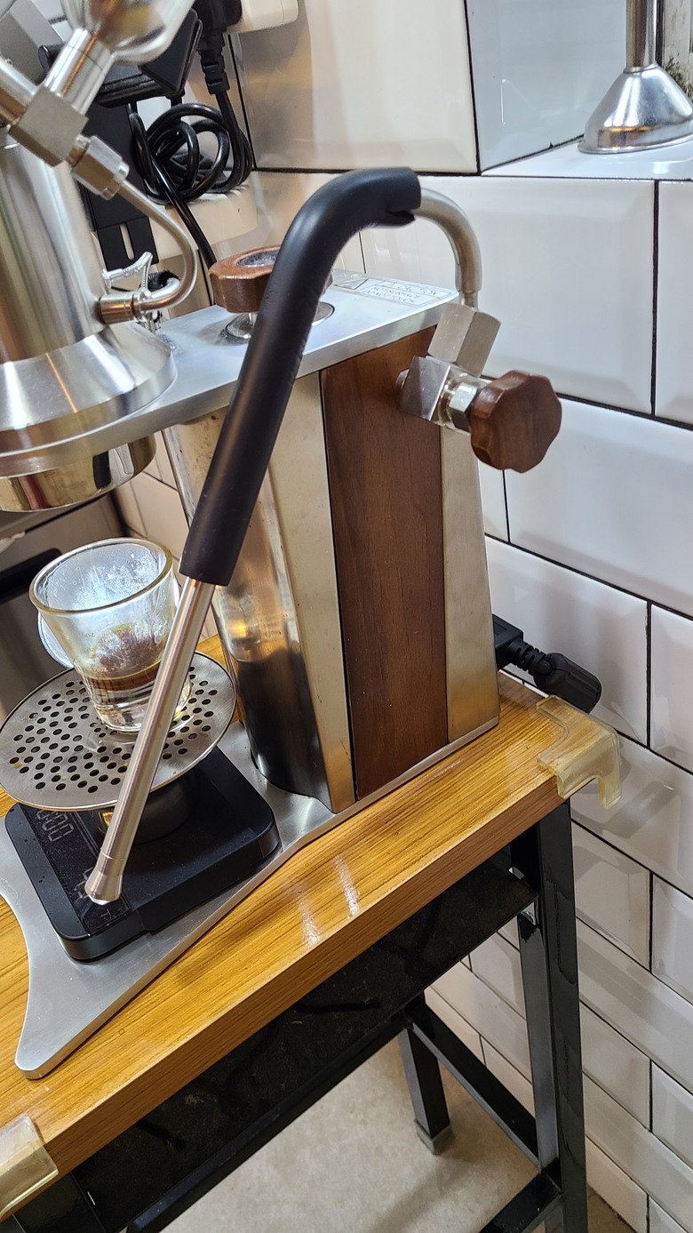 上個月換上的阿萊蔓蒸氣管,最終還是拆掉了,不知道是管子長了還是管徑小了,蒸氣力道比原裝小了許多,打奶時間也比較長,所以決定換回原裝使用