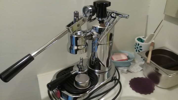 tengchang0211 wrote:請教一下我現在用雙...(恕刪) 你的拉桿壓到底時,在咖啡液流完之前放開,會回彈一些嗎?如果不會,很好如果會,代表沖煮頭裡有空氣,在你放開拉桿後空氣體積回彈而使拉桿被抬升空氣會佔掉沖煮頭的容量,萃取量就會減少在Cremina上有個做法,我不知道在La Pavoni上有沒有用,你可以試試在拉桿拉升到最高點,準備萃取的時候先輕輕往下壓,這時沖煮頭上方是空氣,下壓時空氣會被迫從沖煮頭的入水口出去,不會覺得有阻力壓到感覺有阻力時就是活塞已壓到水面,入水口已關閉,就不要再壓,慢慢抬起拉桿回到最高點反覆這個動作幾次,可以把沖煮頭裡的空氣排出空氣排出後水量就會變多,你在下壓時會覺得遇到阻力的點變高了,也就是水面升高了這樣最多可以增加約10cc另外一個做法,跟上面一樣,但是在下壓感覺有阻力時再往下壓一點壓力迫使水進入咖啡粉,咖啡粉吸了水之後再往上慢慢抬起拉桿到最高點這樣被咖啡粉吸收的水會再補充進沖煮頭,萃取量就能增加但是這樣容易因拉起拉桿時的吸力破壞粉餅,比較不建議