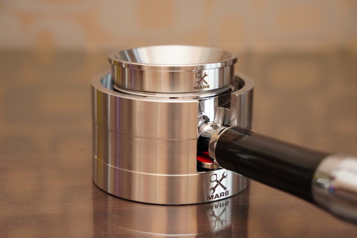HG-one的接粉杯實在有點雞肋,於是想說有沒有辦法一次就完粉,不用再倒到濾杯一次。果然我在淘寶找到這家有做HG-one 專用的壓粉座跟一字型的接布粉器。搭配無底把手使用,果然高度適中。落粉後馬上轉動接布粉器,接下來壓粉後就搞定,可以省下一些步驟跟時間了。提供給需要的人參考使用~
