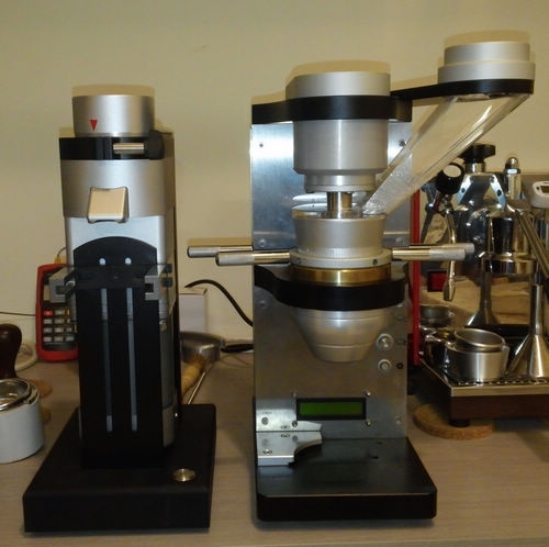 我這三天幾乎要把送的那包12 oz豆子,約340g消耗光了剛才用繪意71和Monolith Conical試做好幾杯這71mm和68mm錐刀雖然看起來很像,但不知是哪裡不同,又或者是磨豆機的精度真的差很多味道真的很不一樣繪意71前段的苦味很不容易感受到,中後段的香氣和味道則很活躍Monolith Conical則是很平衡順口,反而不像我對錐刀的印象有時會覺得太順,一個不小心就一口下肚,然後就沒了,什麼都沒了同樣在Lambro用18.1g粉,做出相同流速繪意71磨出來的,在0.95 bar的鍋爐壓力之下預浸,水就是穿不過粉餅而Monolith Conical磨出來的,水很容易就穿過,比較容易預浸完全不知道這會不會就是味道差異的原因今天雖然有帶Rossa PG回家,在它強大的壓力之下,繪意71也是可以預浸完全的可是今日咖啡因超標,不能再試了今晚也試出來了,Monolith Conical的確可以不做WDT不做WDT的好處是落粉鬆散(做了WDT之後會變緊實)只要將把手晃一晃或拍一拍,粉面就平了我買這台,對味道的期待是其次,改善流程減少步驟才是我真正要的這台完全做到了從此我不用拿著吹球吹啊吹,把沒掉下去磨的豆子吹下去,又把桌面弄的到處粉不用拿著竹籤或打蛋器攪啊攪不用Blind Shaker接粉搖啊搖灑花接下來,有請Yiyans大開箱,Monolith Twins,平刀錐刀雙胞胎