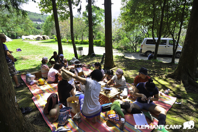 酒足飯飽後小巧的木箱鼓出現了~代表音樂與歡樂歌聲將感染整個營地
