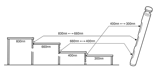 高度調節器接頭,可使連接的多功能竹桌板高度降低一節,記得桌腳高度也要配合哦!!如下圖所示(snow speak官網)