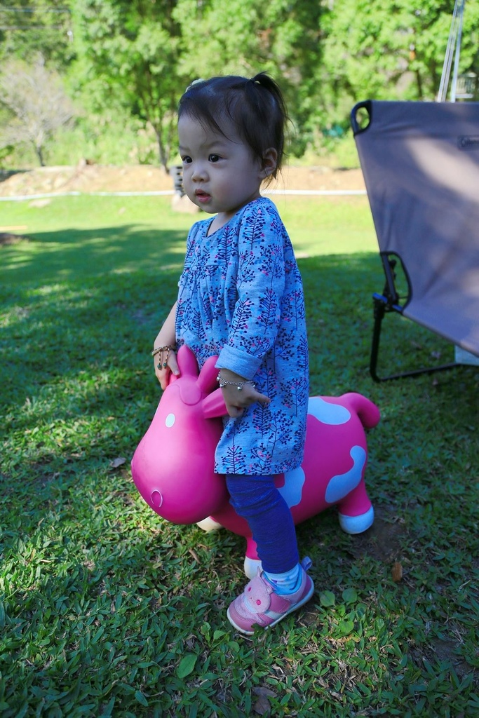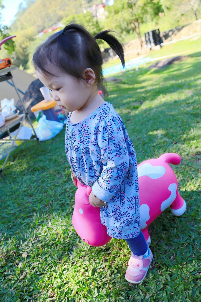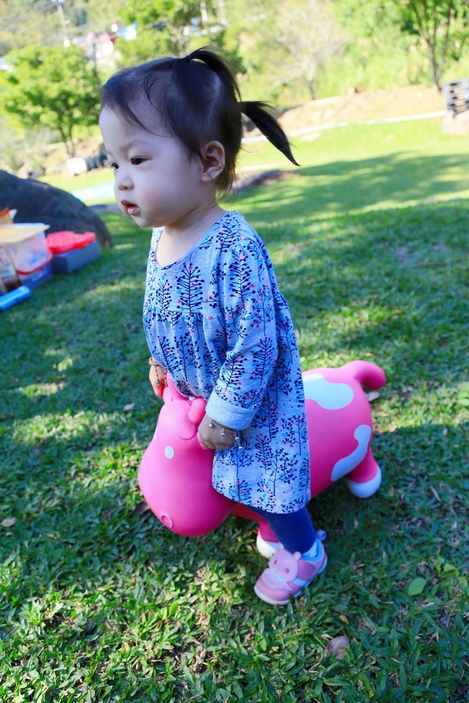 ↓營主看田心在那邊東跳西眺,跑去公用區搬了一隻跳跳"牛"來