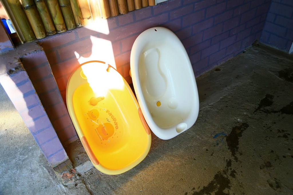 ↓停車場與C4區之間有用鐵皮搭出了一區公共空間,最左側是水槽,有四個;還有冰箱、垃圾桶以及廚餘桶