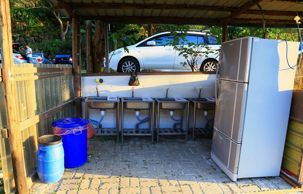 而且水槽有沒照明(營主經建議後承諾會裝設)和垃圾桶(要跑到洗手間前的樹下)有點不方便