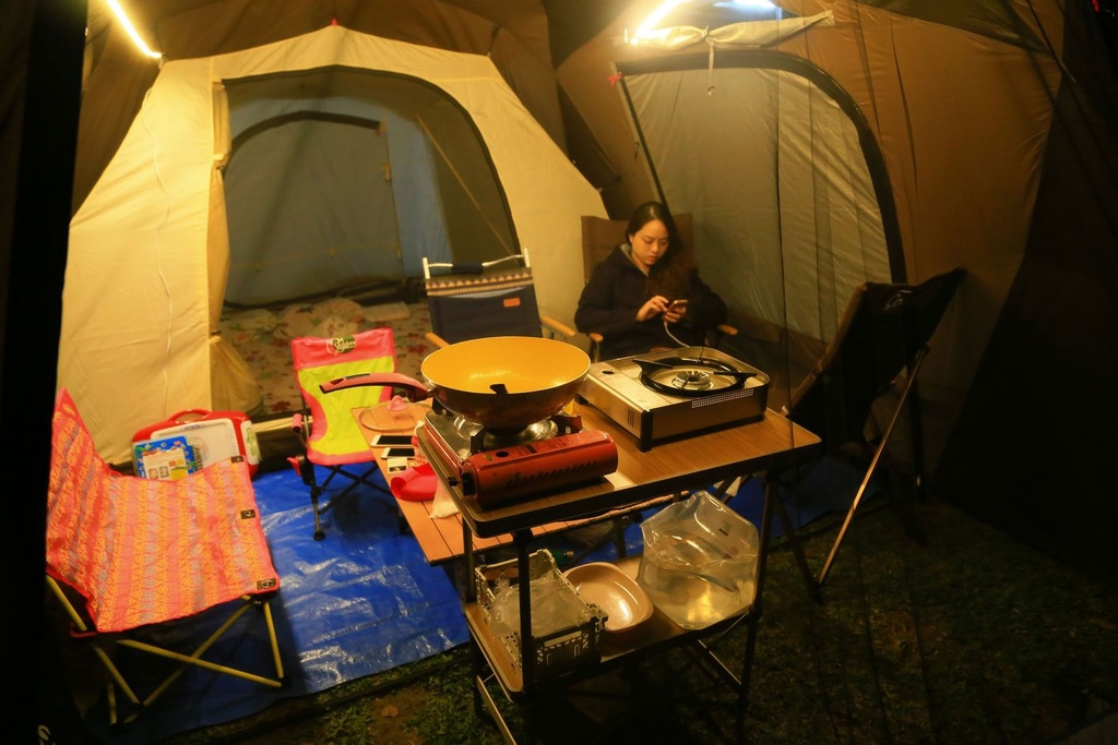 ↓夜幕開始低垂,把東西移到帳內,之前的客廳帳是320x320公分